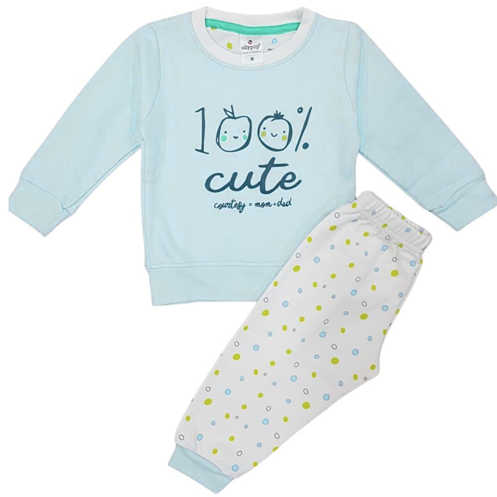 Ollypop Full Sleeves Cord Set With Tee And Lounge Pant All Over Print - Light Blue
