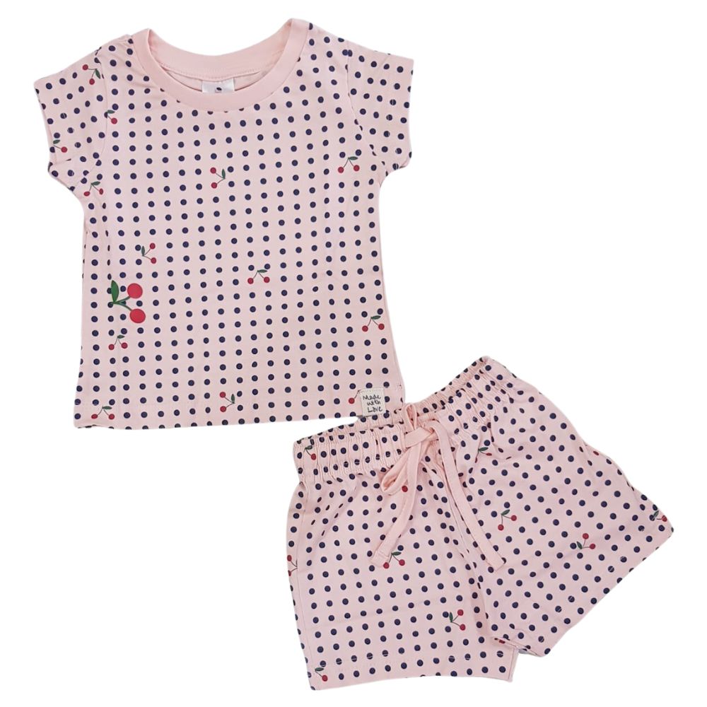 Ollypop Cotton Girl Half Sleeves T Shirt And Short Cord Set With Polka Dots Print - Light Pink