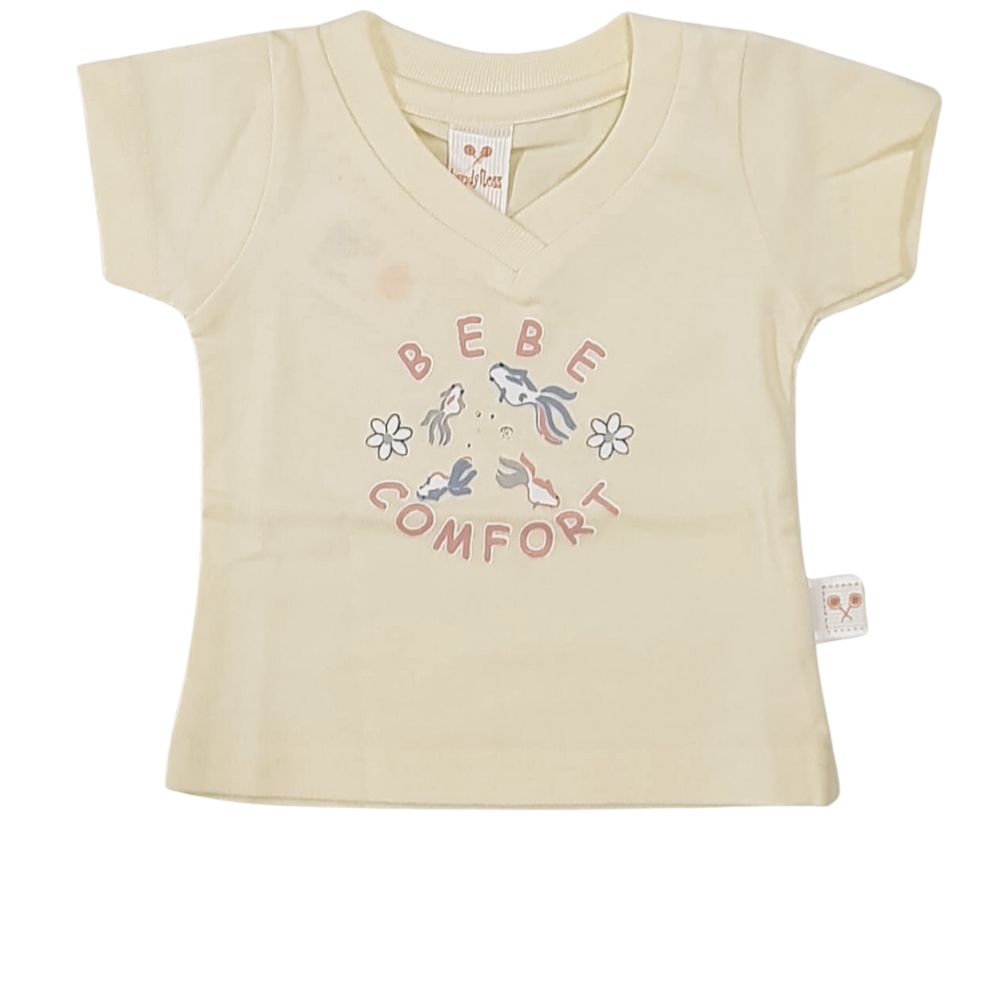 Babies Secret , cotton , Half Sleeves , Top for Girls , Light Yellow , Bebe Comfort Text Print , |