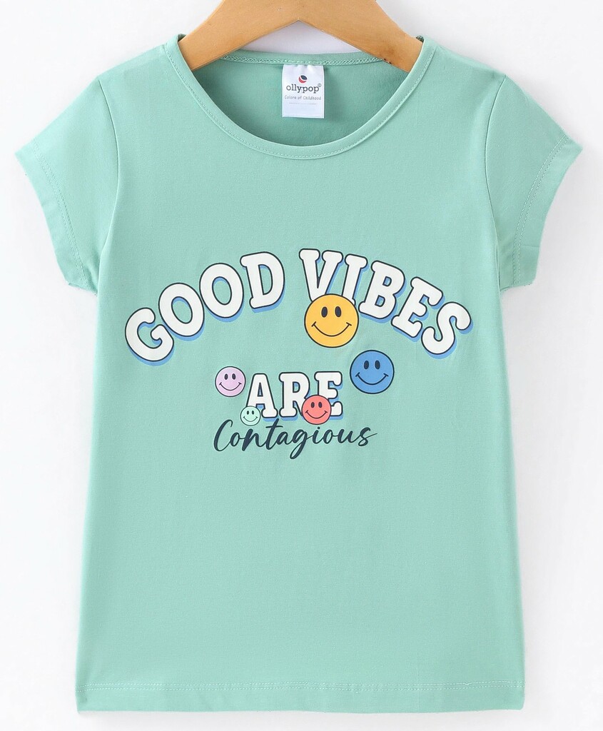 Ollypop , Cotton , Half Sleeves , Top For Girls , Good Vibes Printed , Green , 6-9 Months , 9-12 Months , 12-18 Months , |