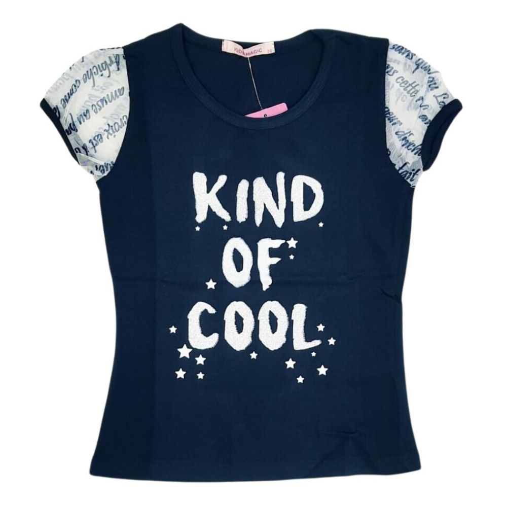 Cotton, Kind Of Cool Printed Top For Girls, Soft Net Half Sleeves, Light Buffed , Black , 1-2 Years , 2-3 Years |
