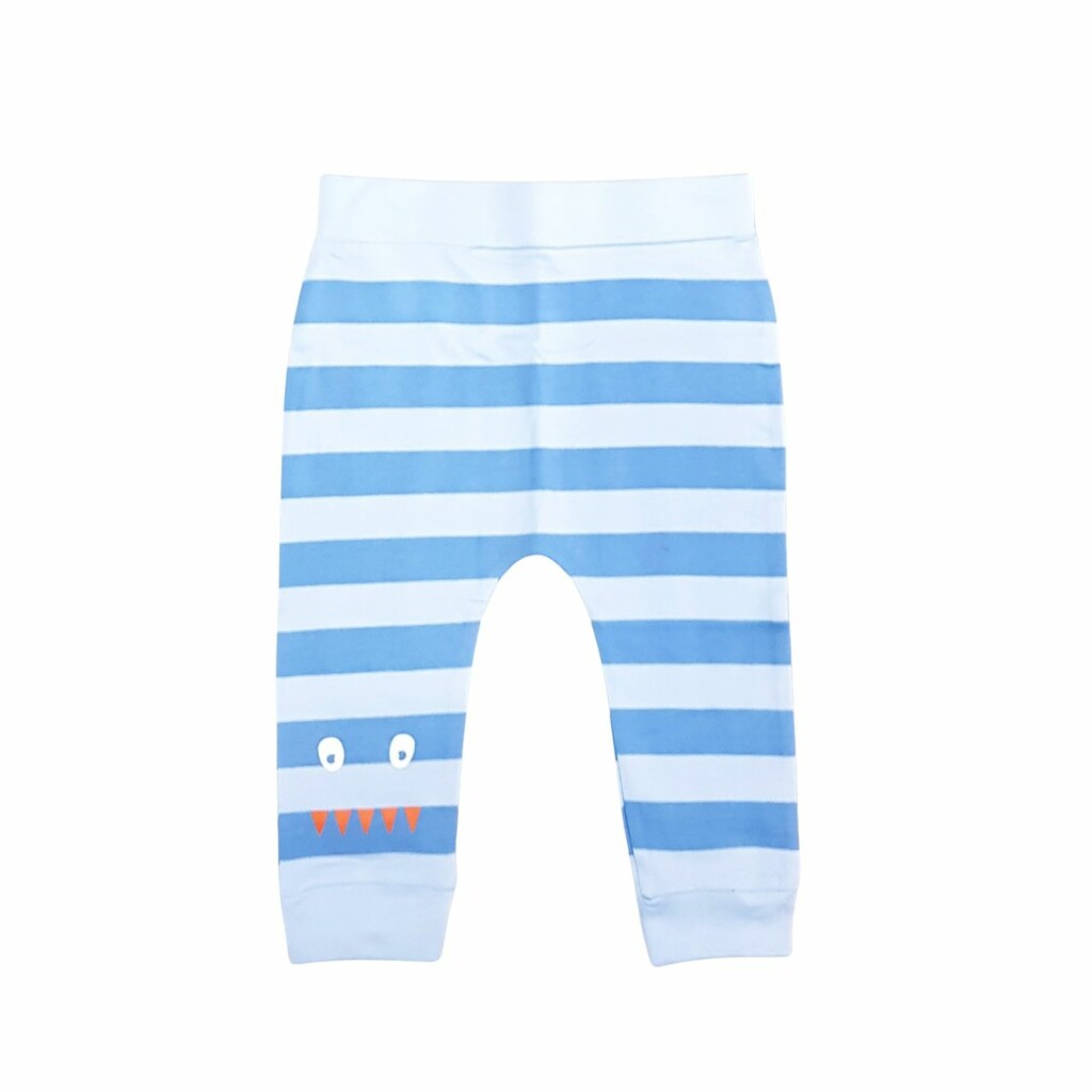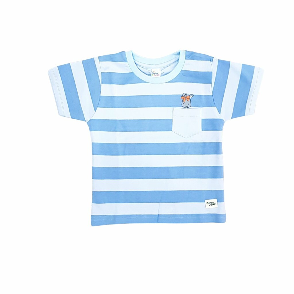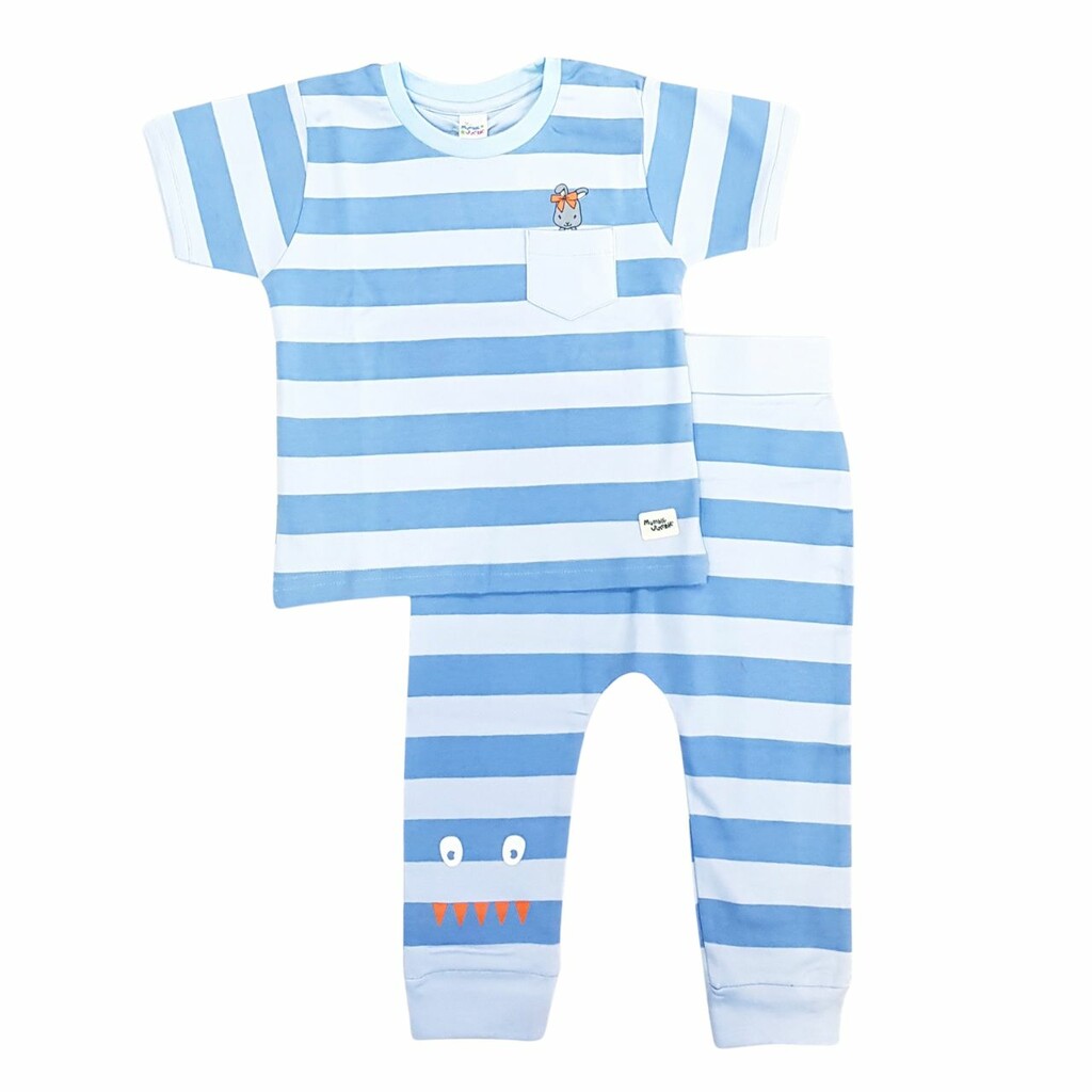Mumble Jumble Kids T-shirt And Full Pants With Strips Print -Blue And Light Blue - 9-12M