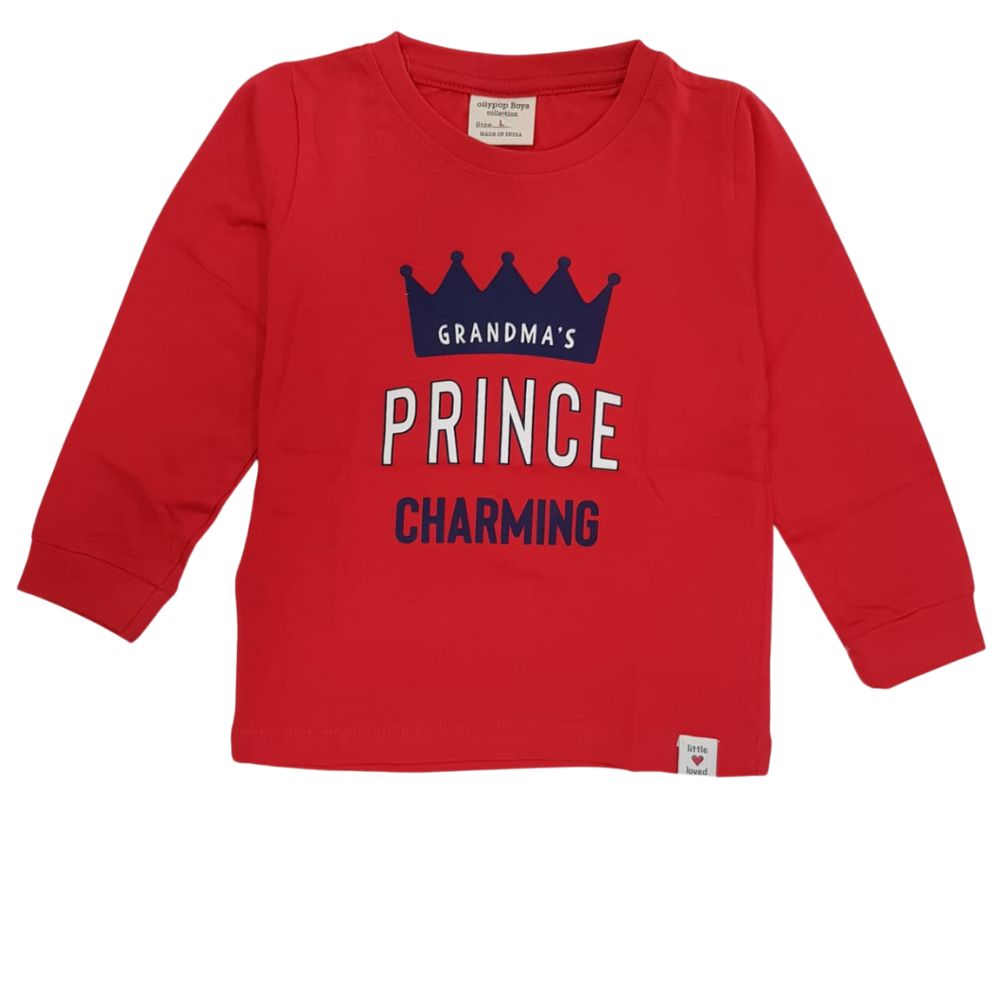 Ollypop Full Sleeves T Shirt With Grandma's Prince Charming Text Print - Red