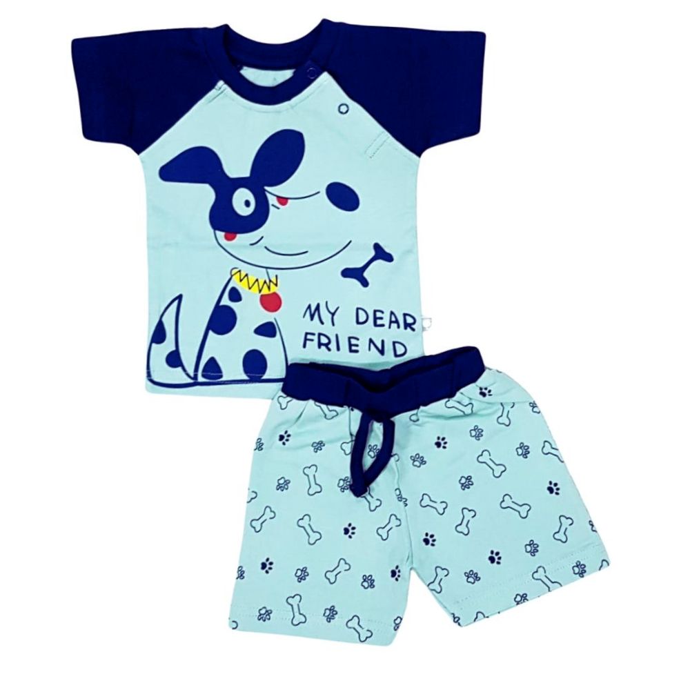 Cotton, Tee And Shorts For Boys, Navy Blue With Green And Navy Blue With Grey, My Dear Friend Printed |
