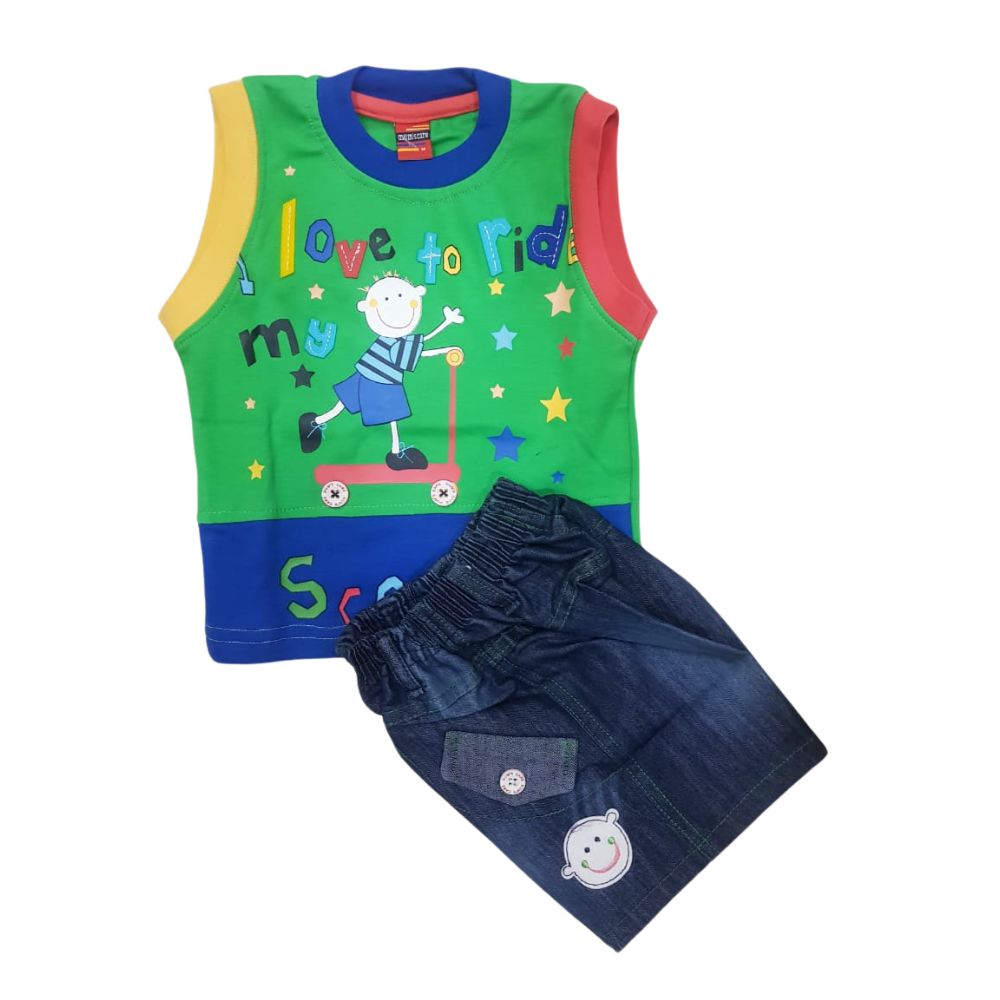 Cotton T Shirt Set , Sleeveless Set , T Shirt And Short , Green Color |