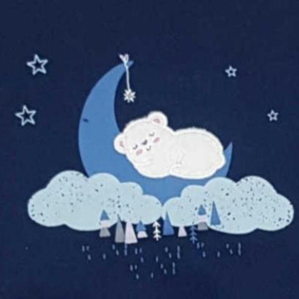 Ollypop Full Sleeves Cord Set With Tee And Lounge Pant Panda In Moon Print With Patch Work-Dark Blue 3-6Months