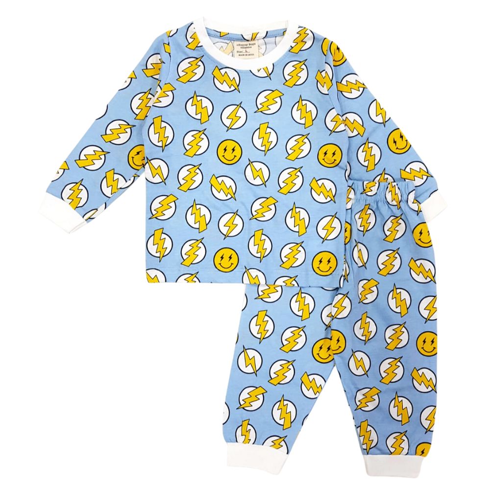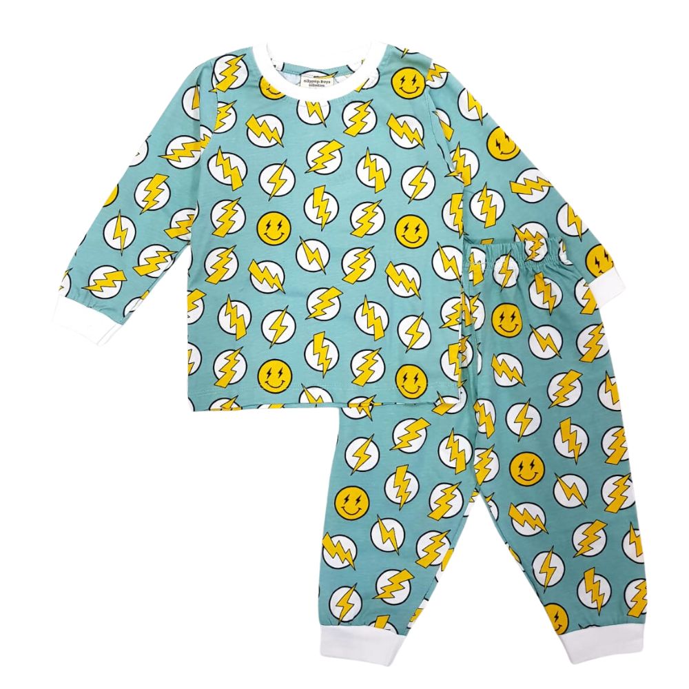 Ollypop Full Sleeves T Shirt And Rib Pant With Flash And Smiley Printed