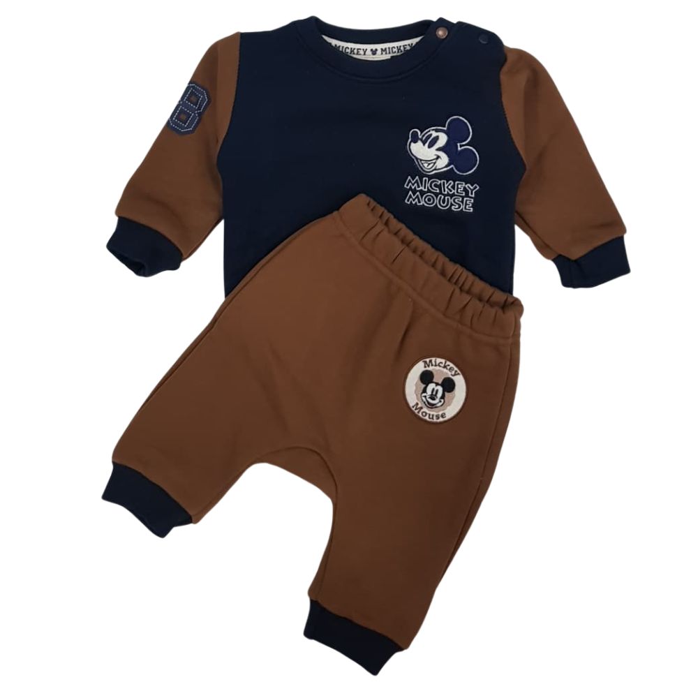 Ollypop Fleece Knit Full Sleeves Winter Wear T-Shirt & Joggers Set With Mickey Mouse Text Print - Navy Blue