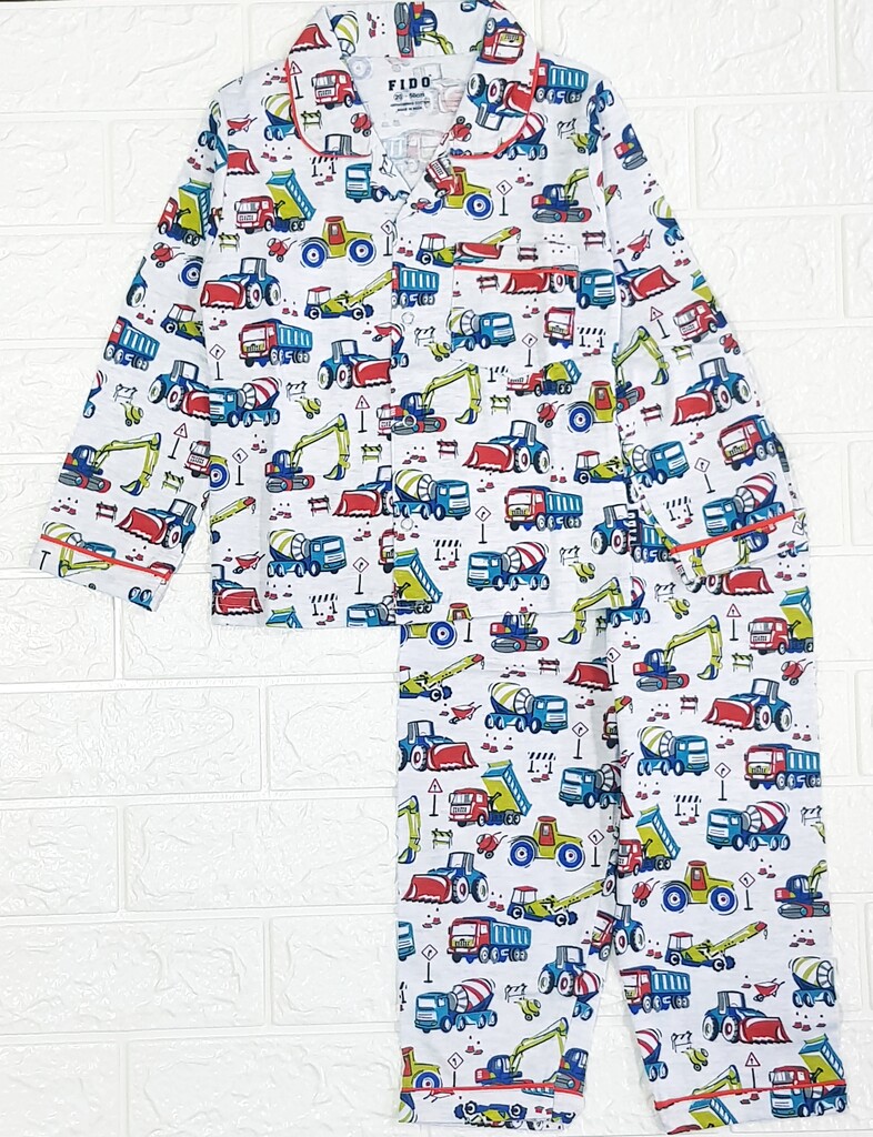 FIDO Cotton Knit Full Sleeves Night Suit With Track Print - Grey - 1-2 Years