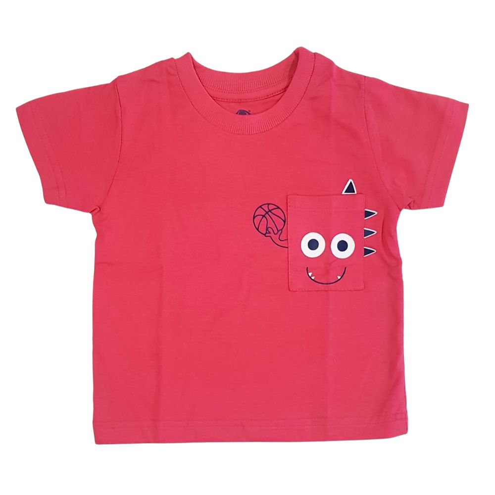 Shop Zero cotton half sleeves T-shirt for boys in pink with pocket print. Soft, breathable cotton T-shirt, comfortable and stylish summer wear for toddlers and little boys. |