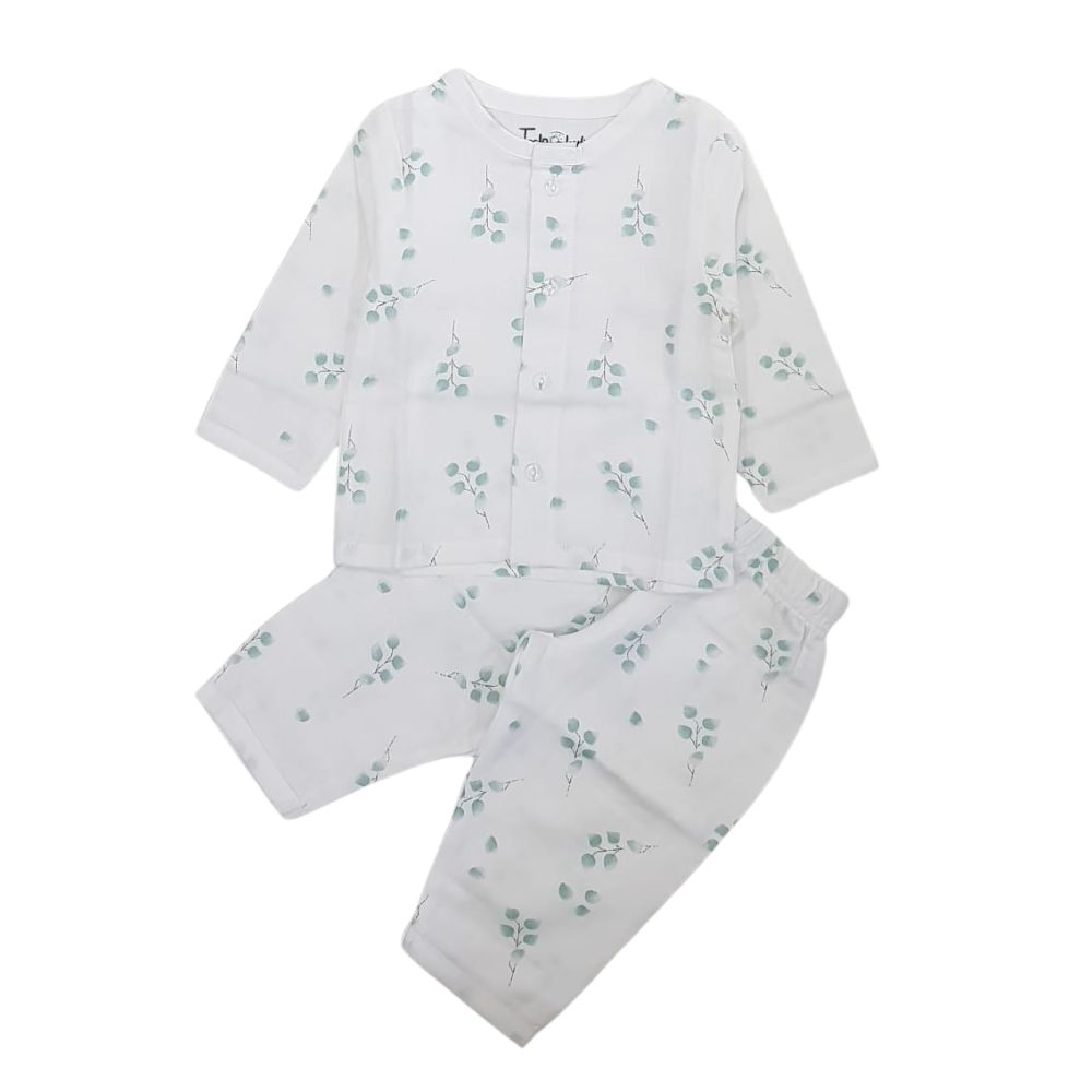 Tods Hut Muslin Front Button Top And Pyjama Set With Leaf Print