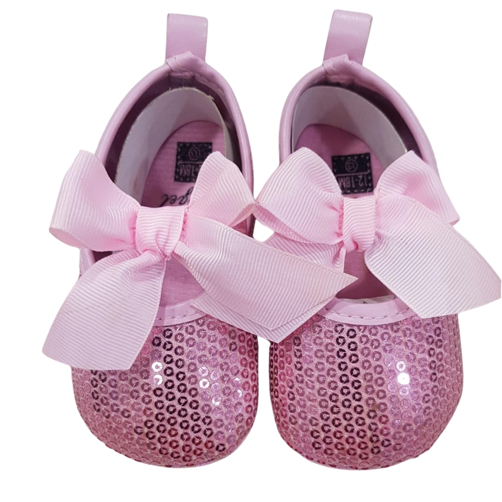 Shop adorable pink baby girl shoes with sequin detailing and soft bow design. Comfortable, lightweight, and perfect for parties or everyday wear. |