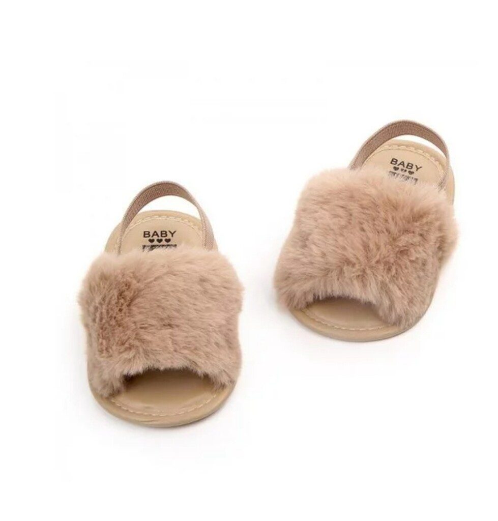 baby girl sandals, faux fur baby sandals, toddler summer shoes, plush baby shoes, soft sole infant sandals, baby slingback sandals, cute baby footwear, fluffy baby sandals, toddler slip-on sandals |