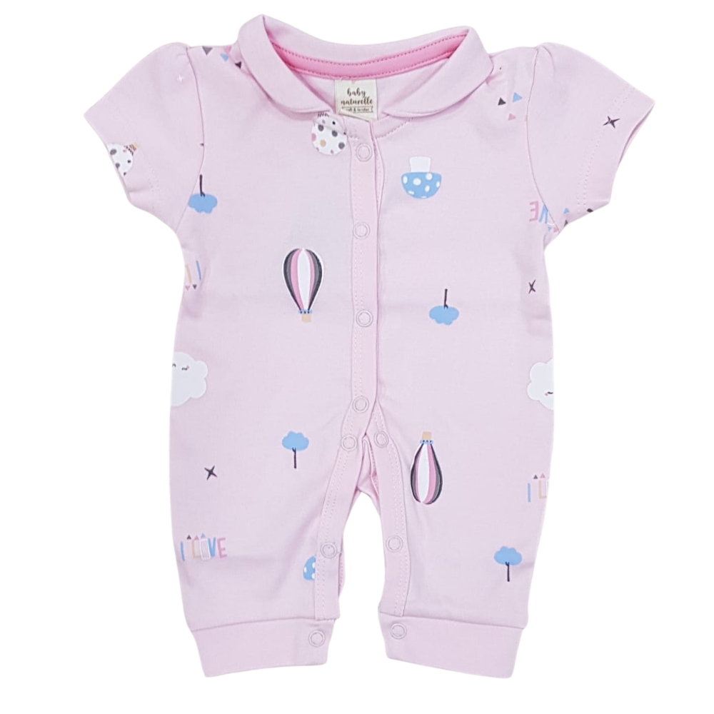Baby Naturelle sleepsuit, cotton baby sleepsuit, half sleeve baby sleepsuit, pink baby sleepsuit, collared baby sleepsuit, baby sleepwear cotton, infant sleepsuit, baby girl sleepsuit, summer baby sleepwear |