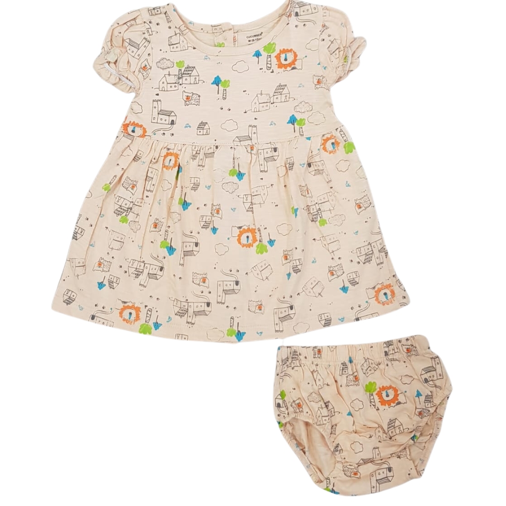 CUCUMBER COTTON HALF SLEEVES FROCKS WITH PANTY ALL OVER PRINT
