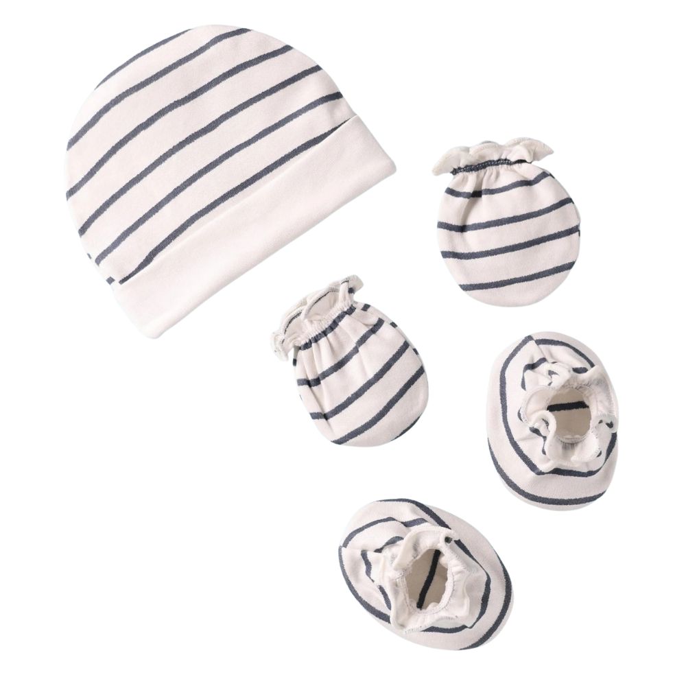 Ben Benny Interlock Knit Cap Mitten & Booties Set With Stripes