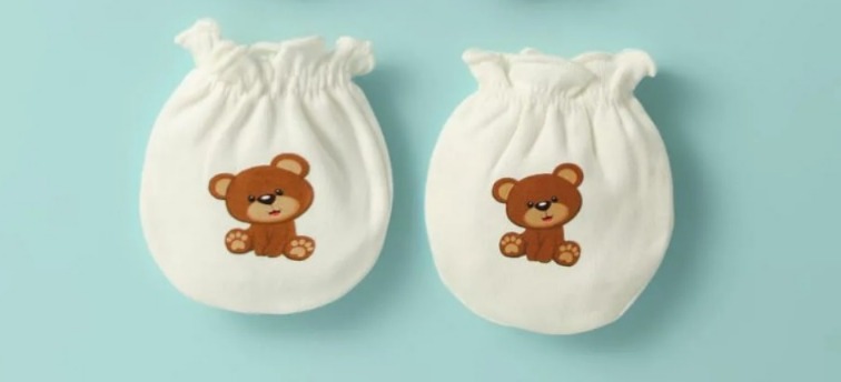 Cotton Mittens , Printed , 0-3 Months , Multi Color |