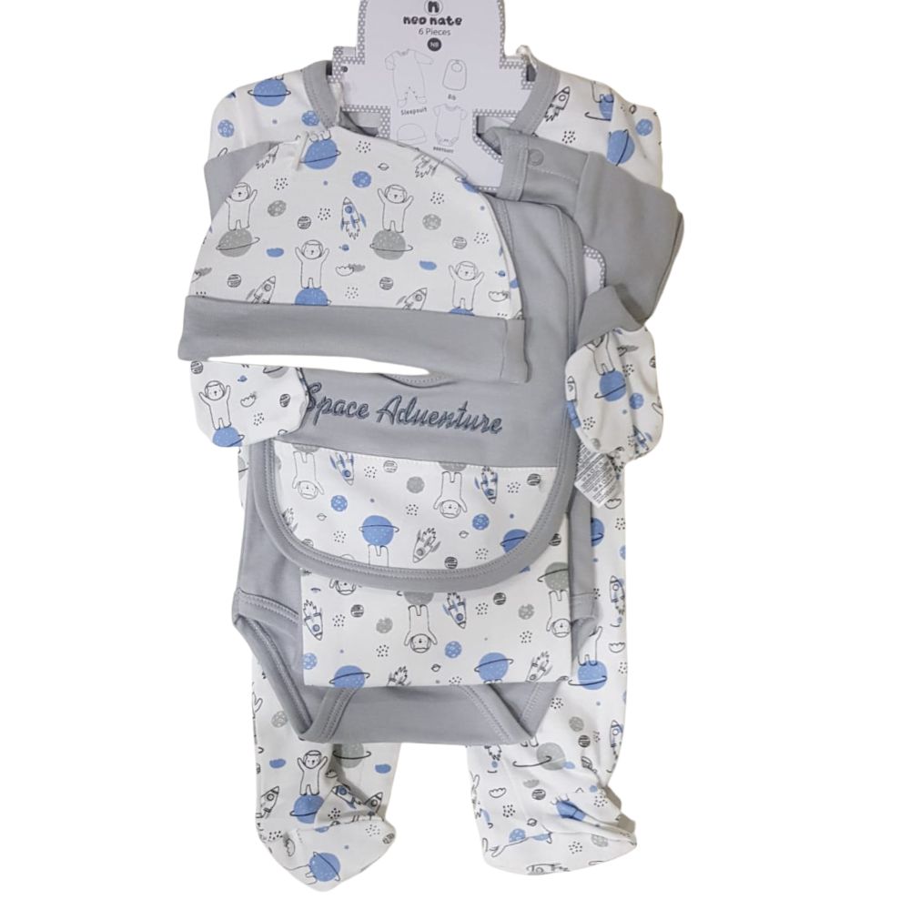Neo Nate cotton full sleep suit set for newborns. Soft, breathable fabric with snap buttons for easy diaper changes and all-day comfort. |