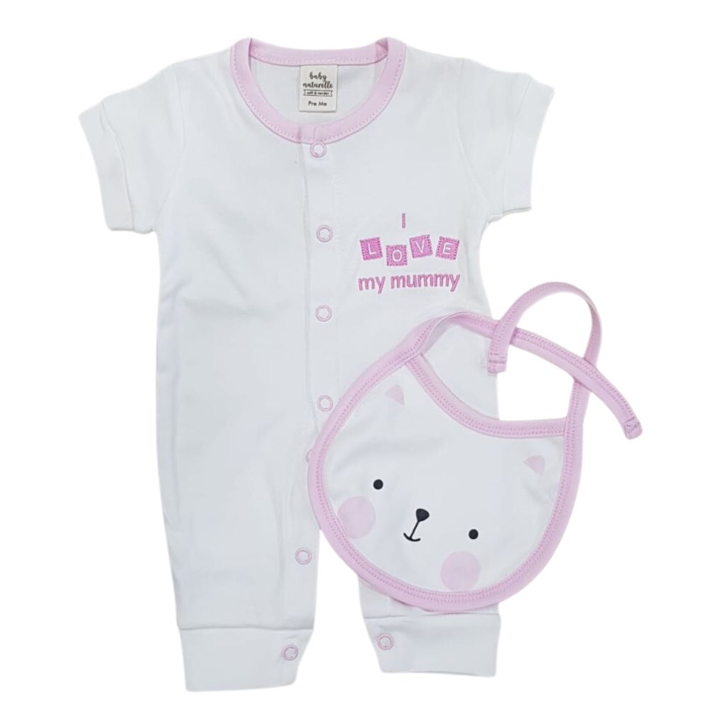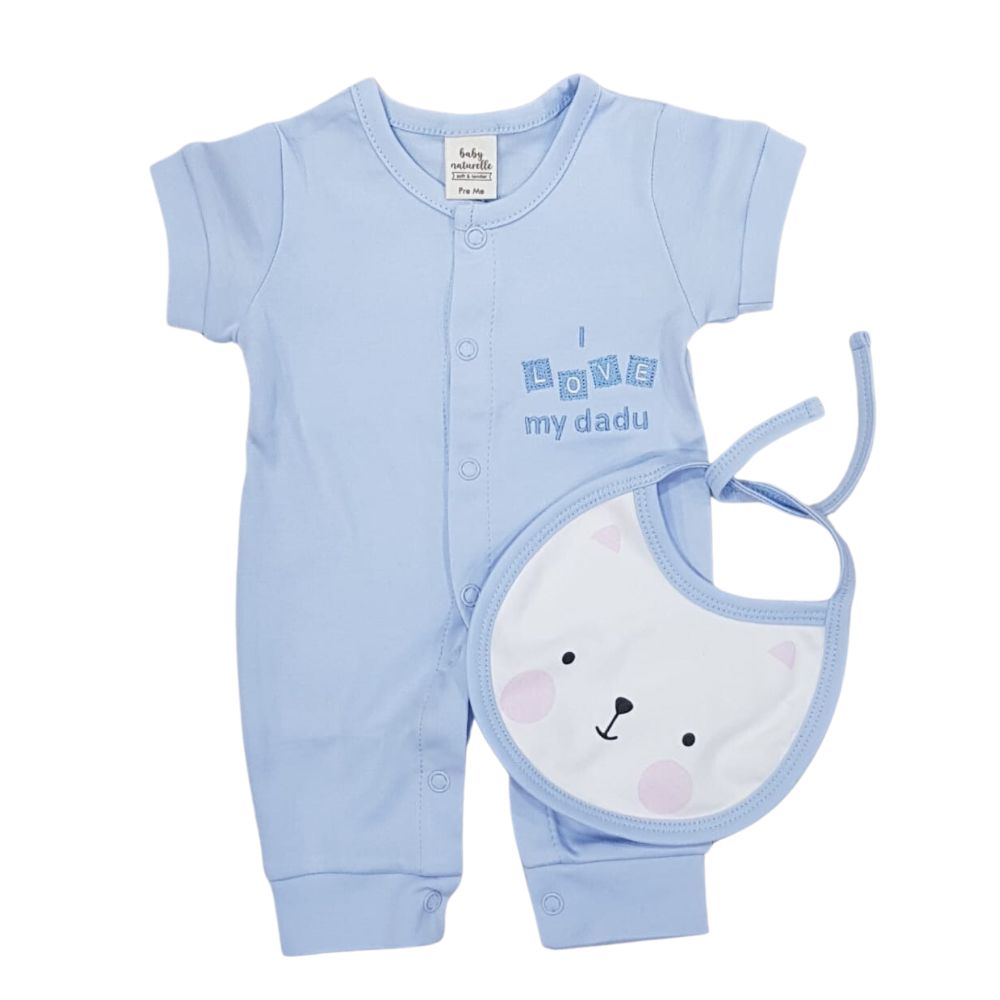Baby Naturelle Cotton Romper With Text Embroidery And Bib Gift Box - 2P