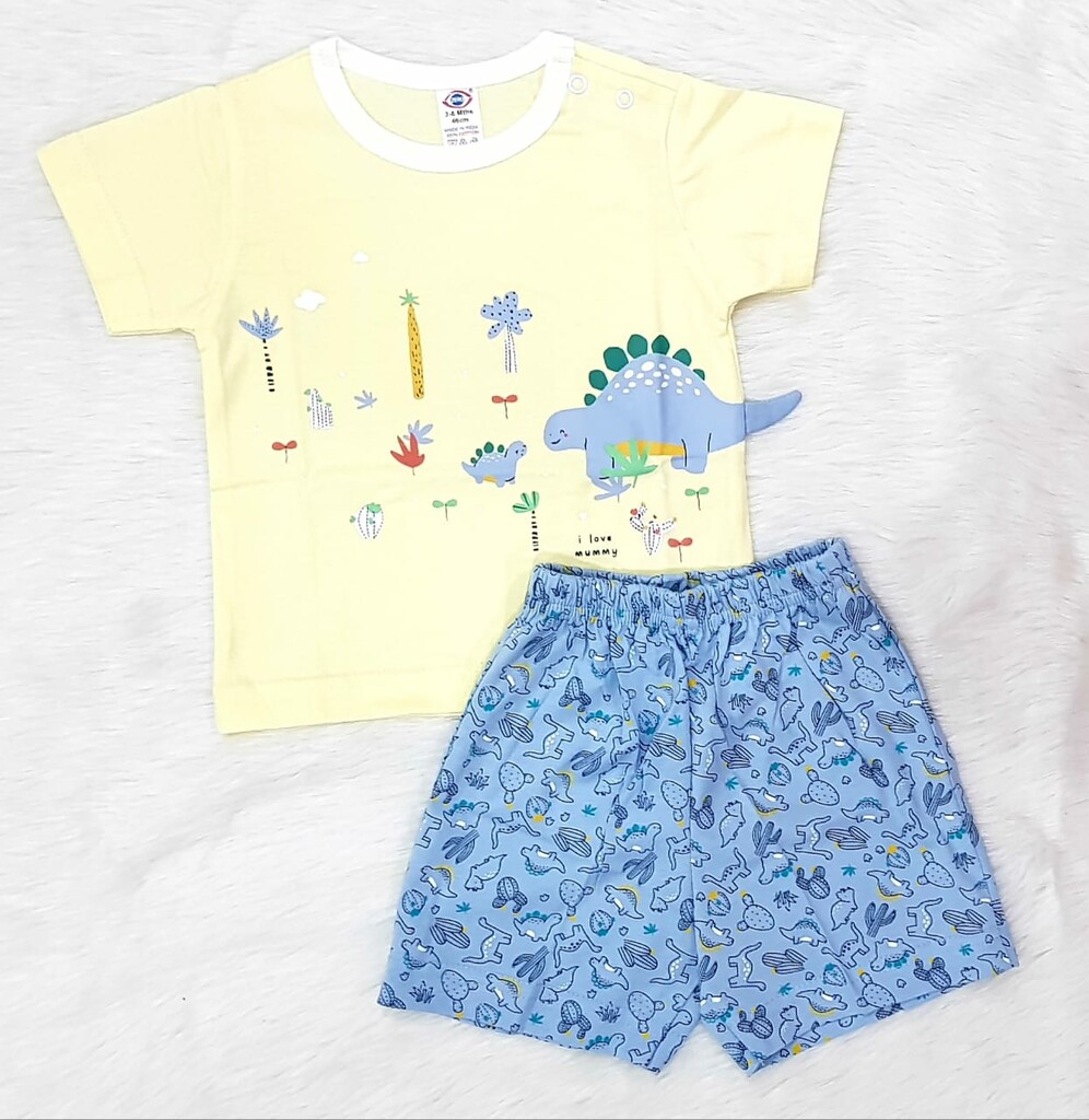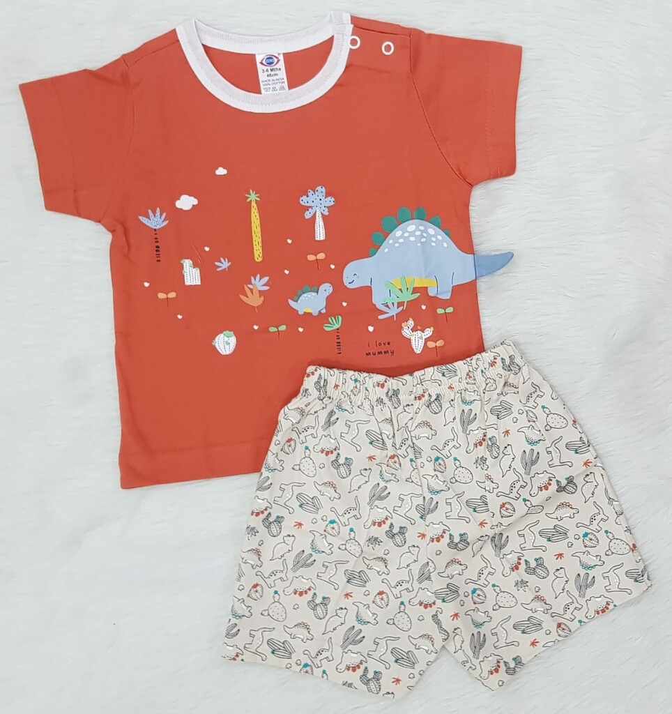 Zero , Cotton , Knit Half Sleeves , Set For Boy , Beach Theme And Dino Prints ,Orange , Green , Lemon Yellow , 3-6 Months , 18-24 Months , 9-12 Months , 6-12 Months |