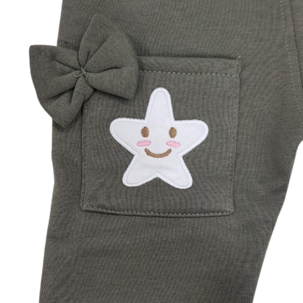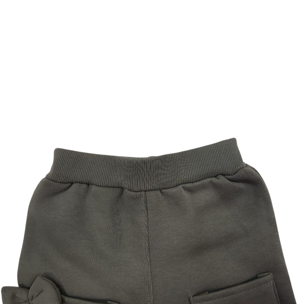 Cotton Solid Warmer Track Pants With Bow For Little Girl