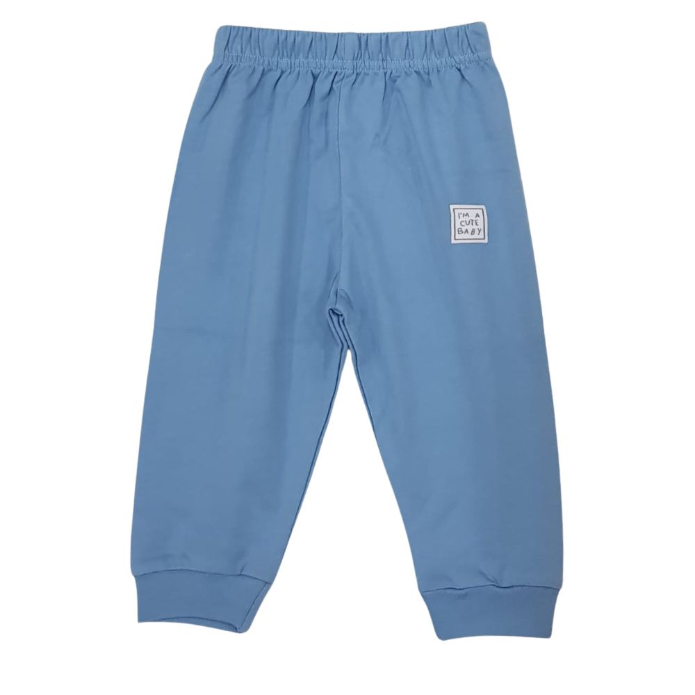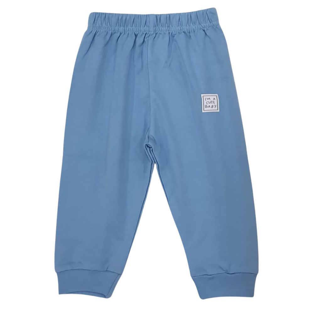 Ollypop Interlock Knit Full Length Leggings With I'm A Cute Baby Patch - Sea Blue