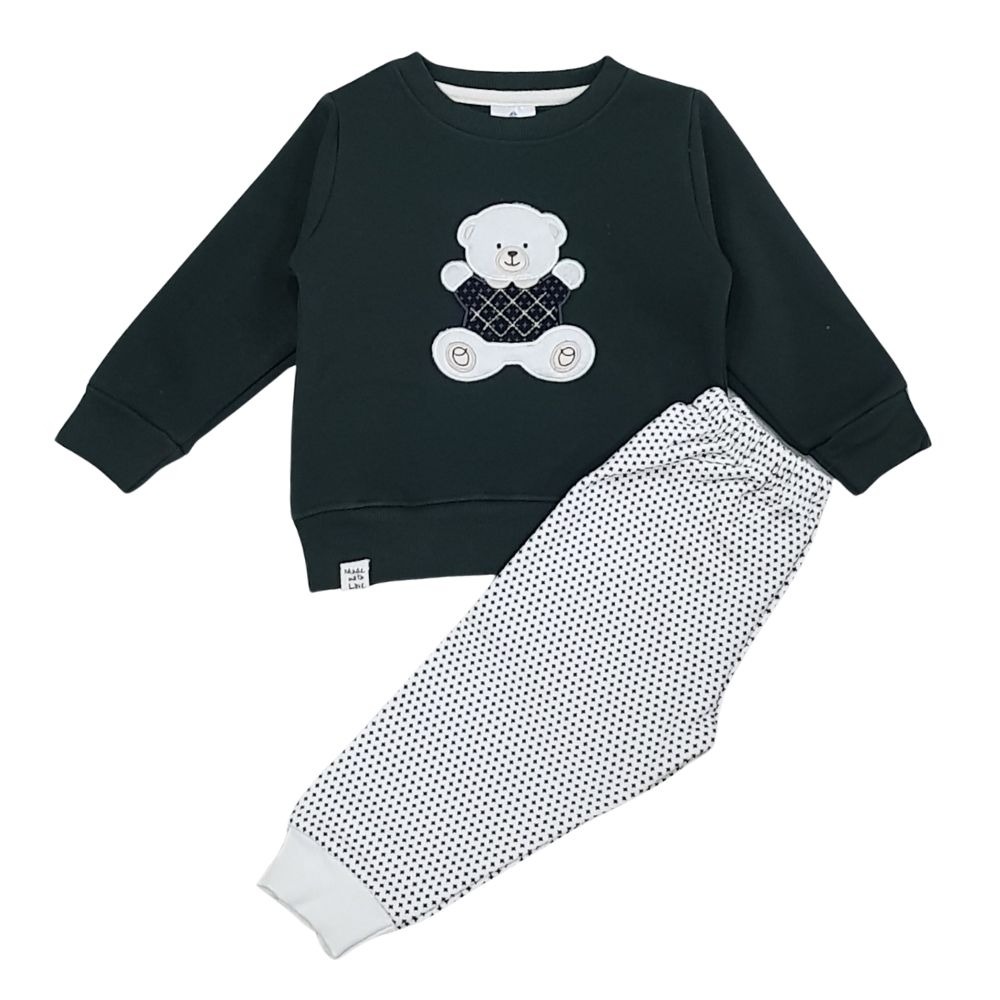 First Smile Cotton Full Sleeves Warmer Set With Cute Patch Work - Dark Green