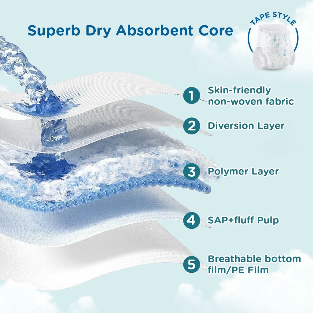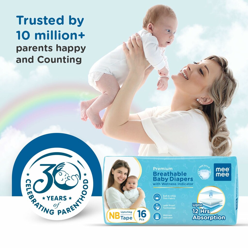 Mee Mee Premium Breathable Baby Diapers | (NB) Size Baby Taped Diapers 16 PIECES
