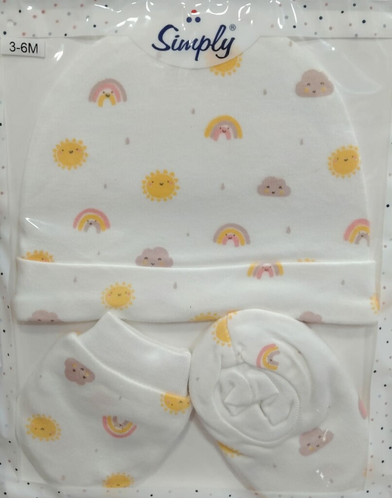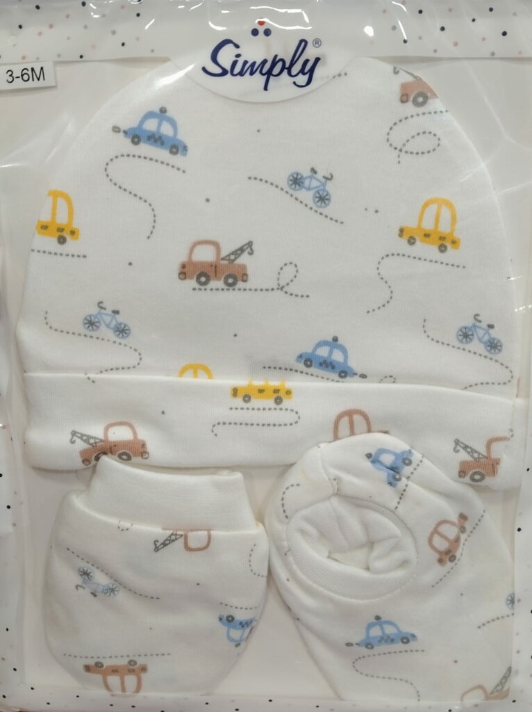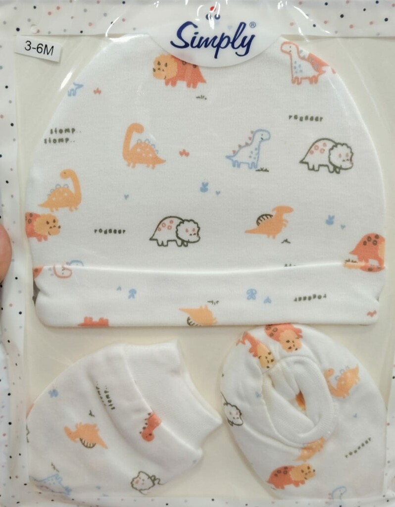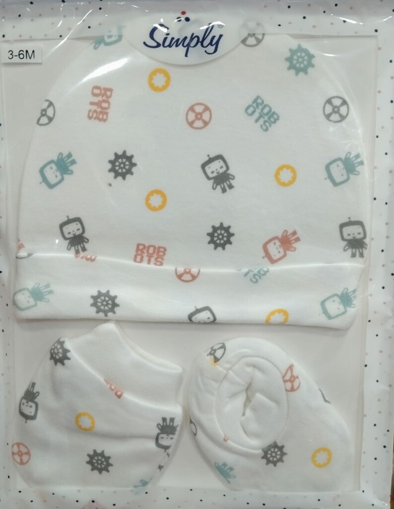 Cotton Cap Set , Multi Color , 3-6 Months , Cap Mitten Booties Set |