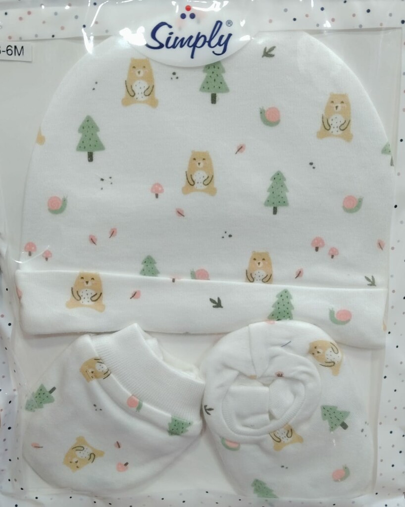 Simply Interlock Knit Cap Mittens & Booties Set With Print
