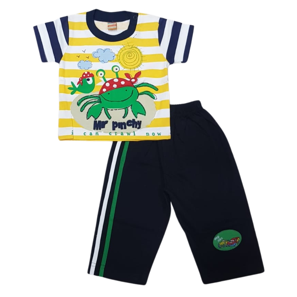 Babies Secret Half Sleeves T-shirt With Long Pants Crab Print With Text Print - 3-6 Months