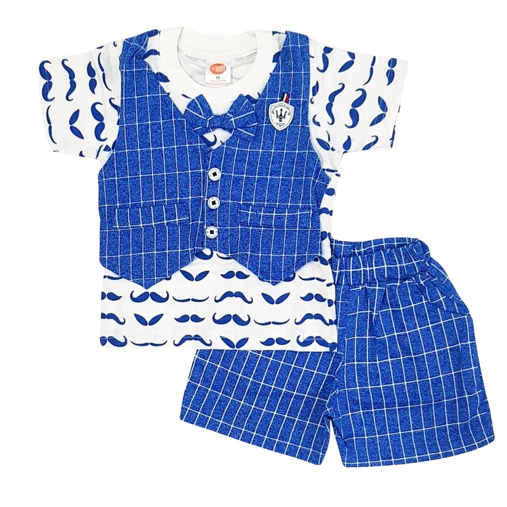 Krunchy Tee And Short With Bow Checks Prints - Blue -White