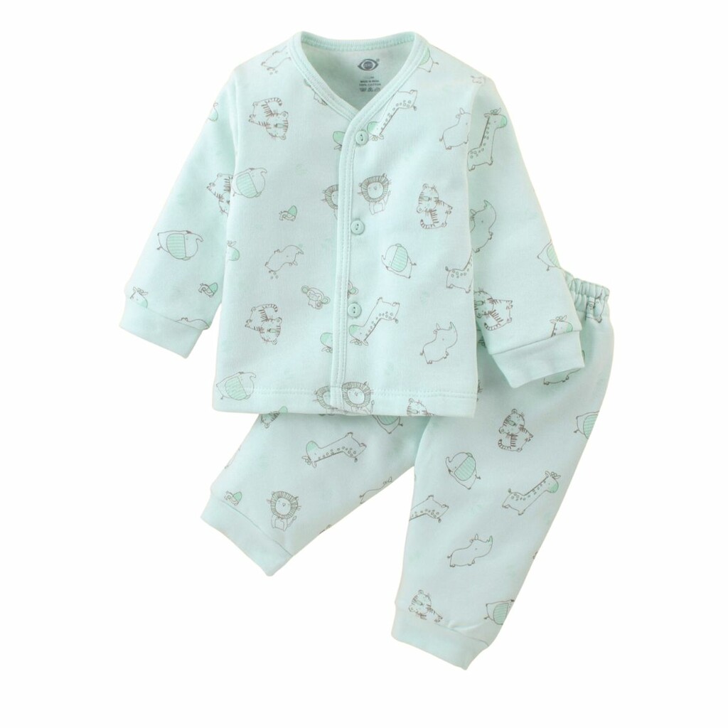 First Smile Full Sleeves Night Suit With Animal Embroidery & Text Print - Blue