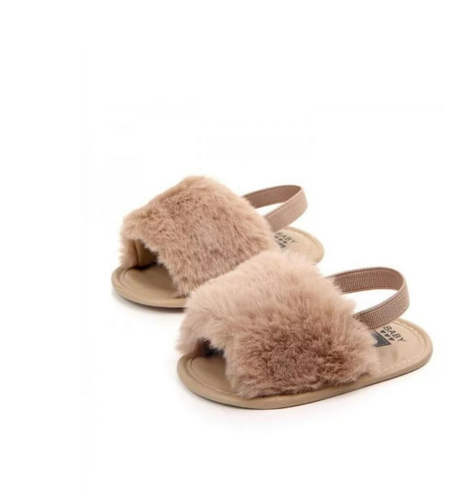 Baby Girl Faux Fur Slingback Sandals ? Soft Plush Summer Shoes
