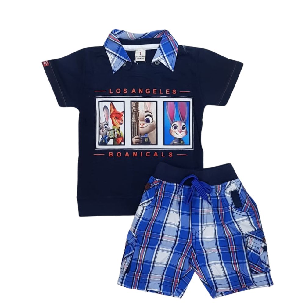 Babies Secret Collar Cotton Half Sleeves Tee With Shorts For Boys Printed - Black With Navy Blue
