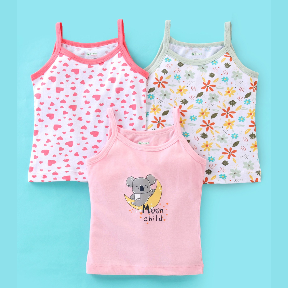 Zero Pack Of 3 Multi Colours Printed Vest For Girls