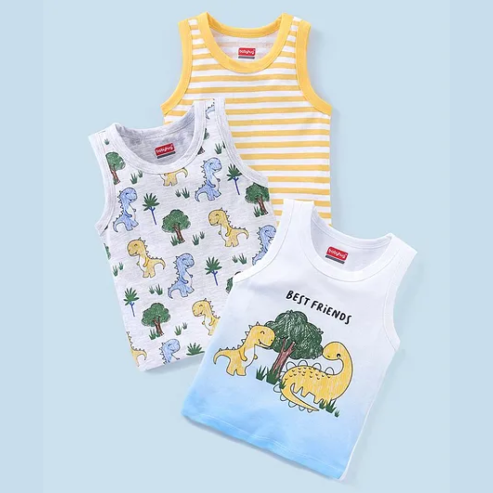 Zero Cotton Boy Vest With Printed Pack Of 3s