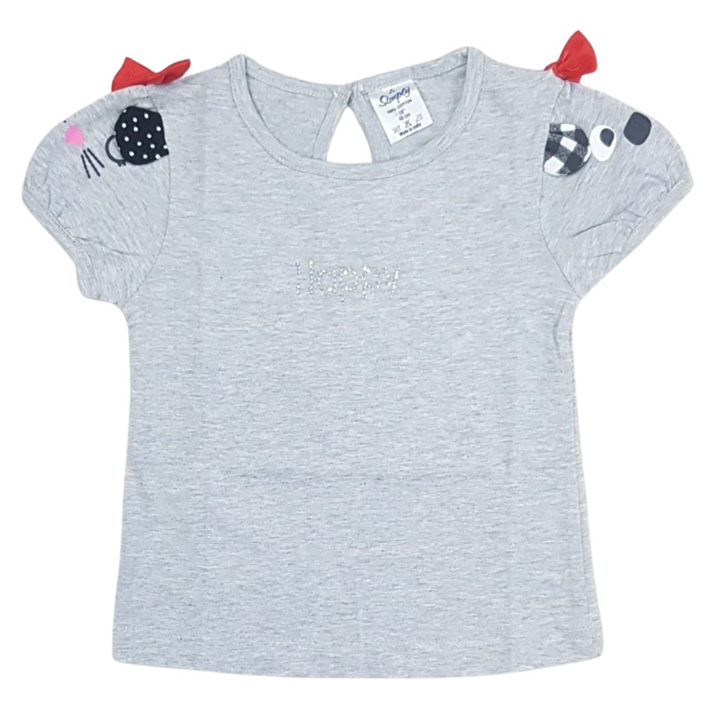 Simply Half Sleeves Top With Funky Print For Girls - Grey