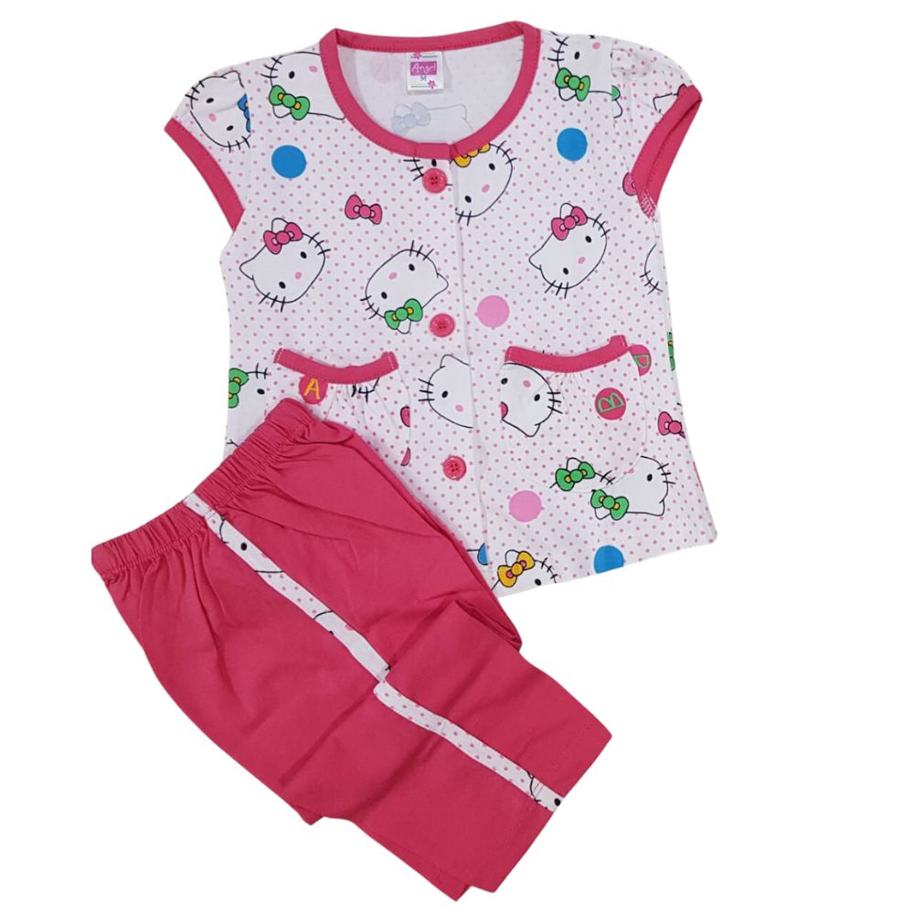 Half Sleeves , Night Dress , Kitten Print , Causal Wear , Off White , 6-12 Months , |