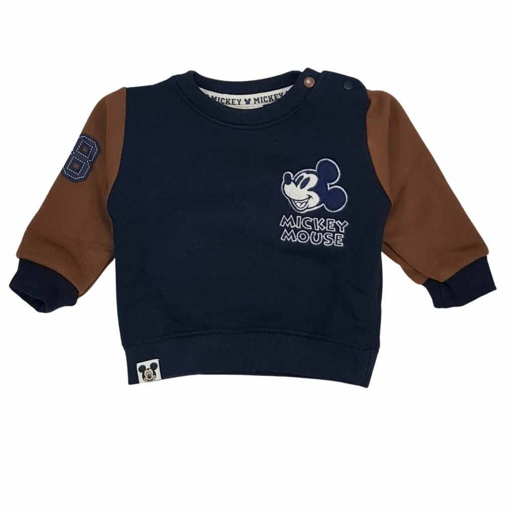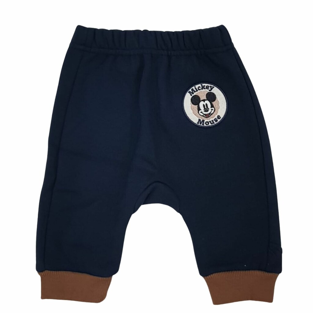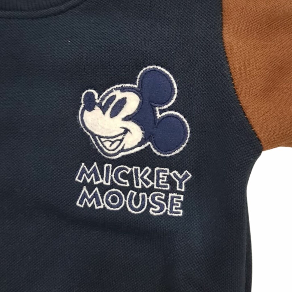 Ollypop Fleece Knit Full Sleeves Winter Wear T-Shirt & Joggers Set With Mickey Mouse Text Print - Navy Blue