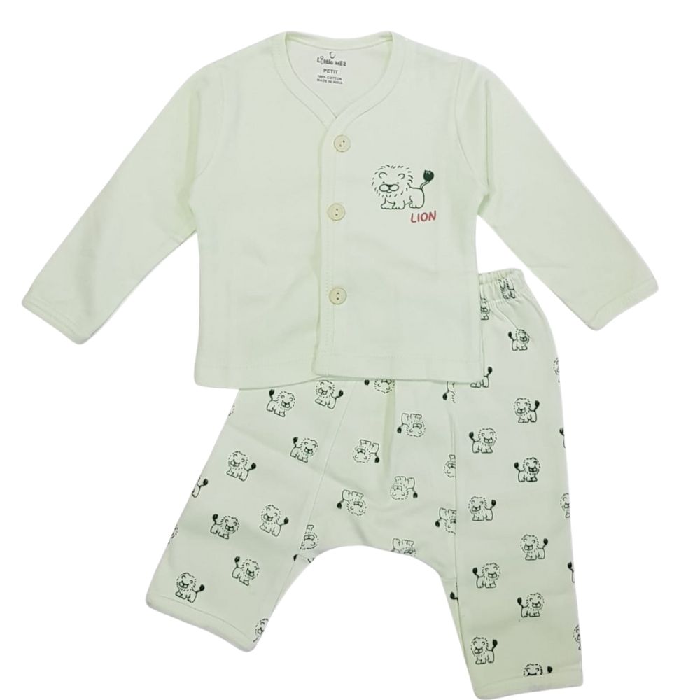 Little Me New Born Cotton Full Sleeves T Shirt And Pyjama Set With Prints - Green