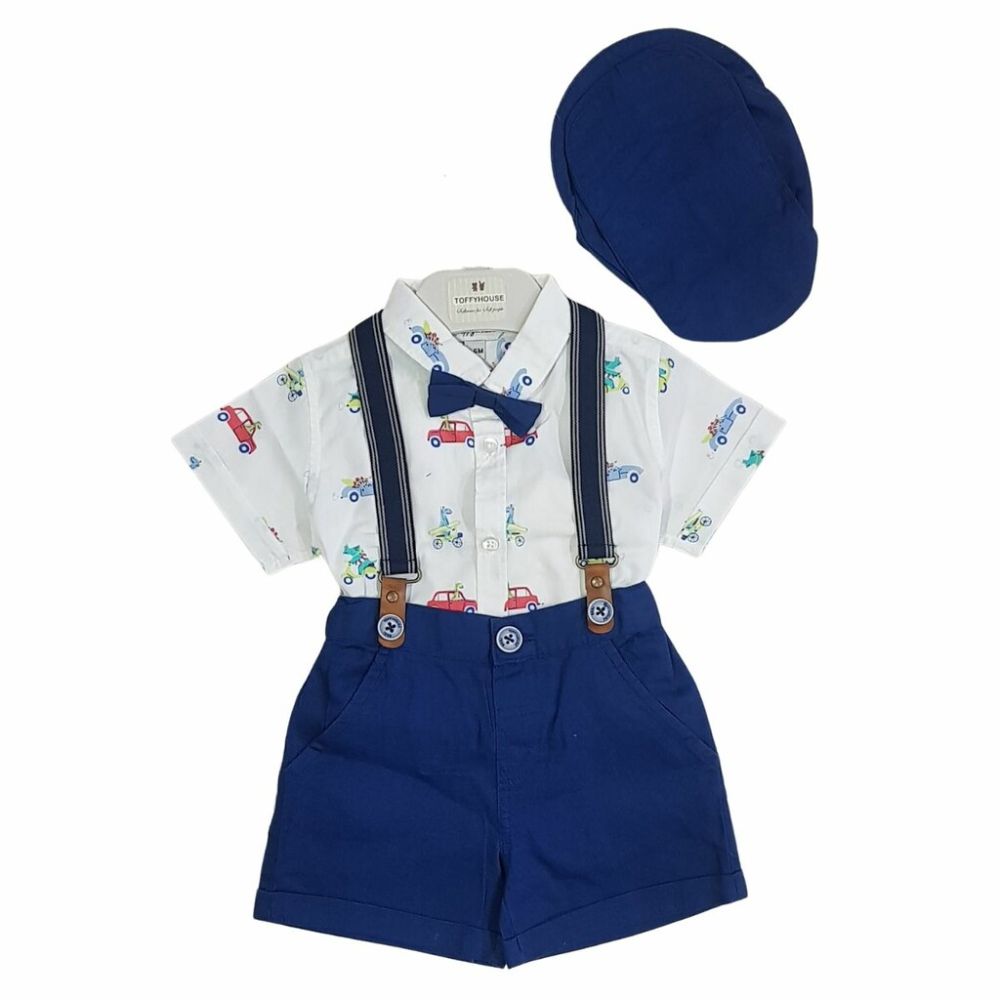 toffy house boys suspender set, navy blue suspender set kids, cotton half sleeves t shirt shorts set, boys party wear outfit, toddler boys casual cotton set, boys stylish summer outfit, kids bow and cap clothing set |