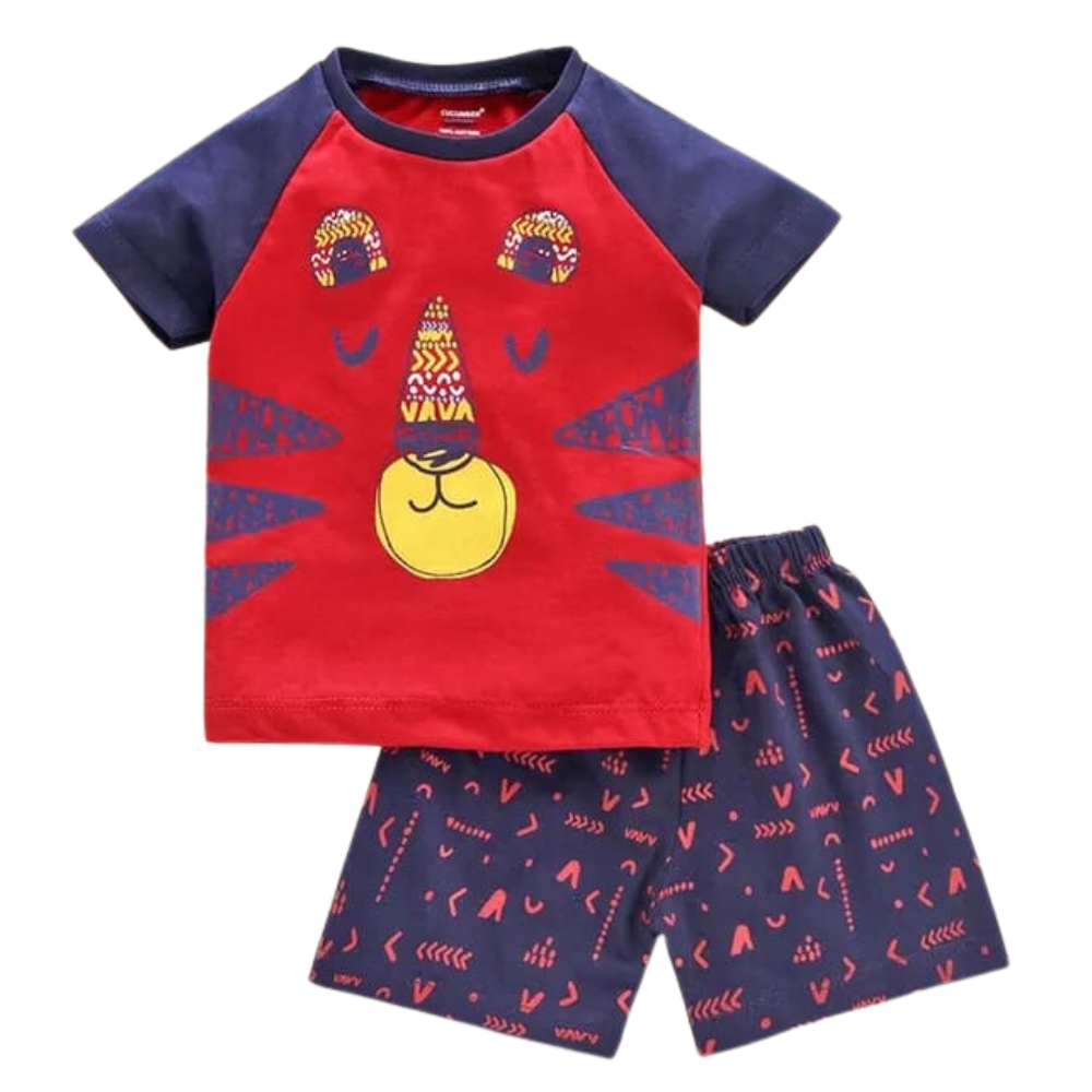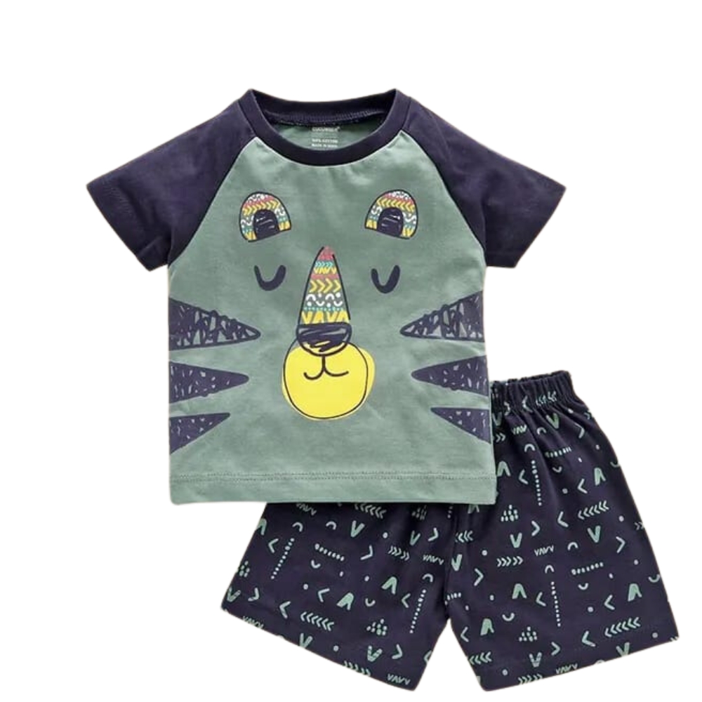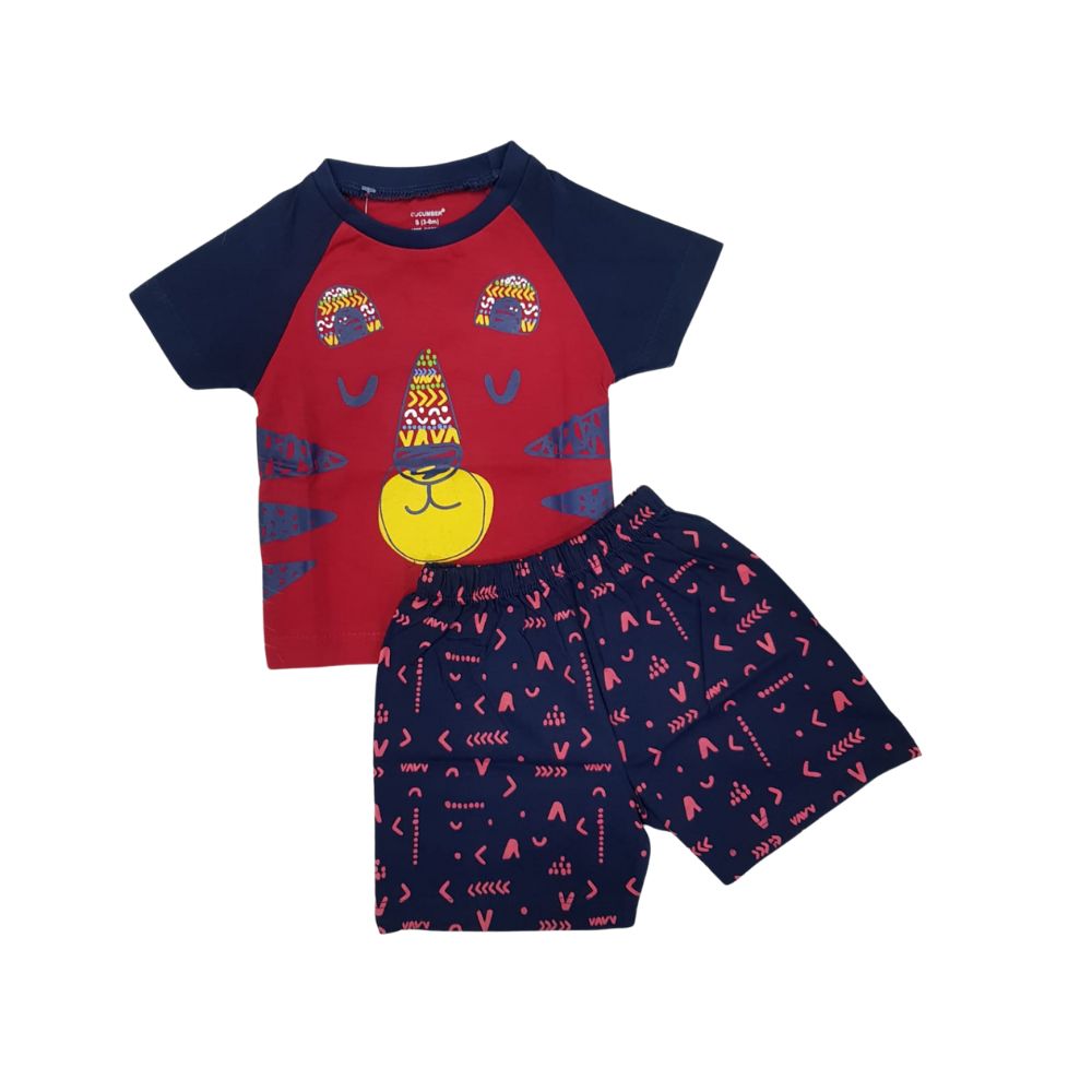 Cucumber , Cotton , Half Sleeves , T-Shirt & Shorts Set ,Face Printed , Grey , Green , Blue , Dark Red , Red , 3-6 Months , 6-12 Months , |