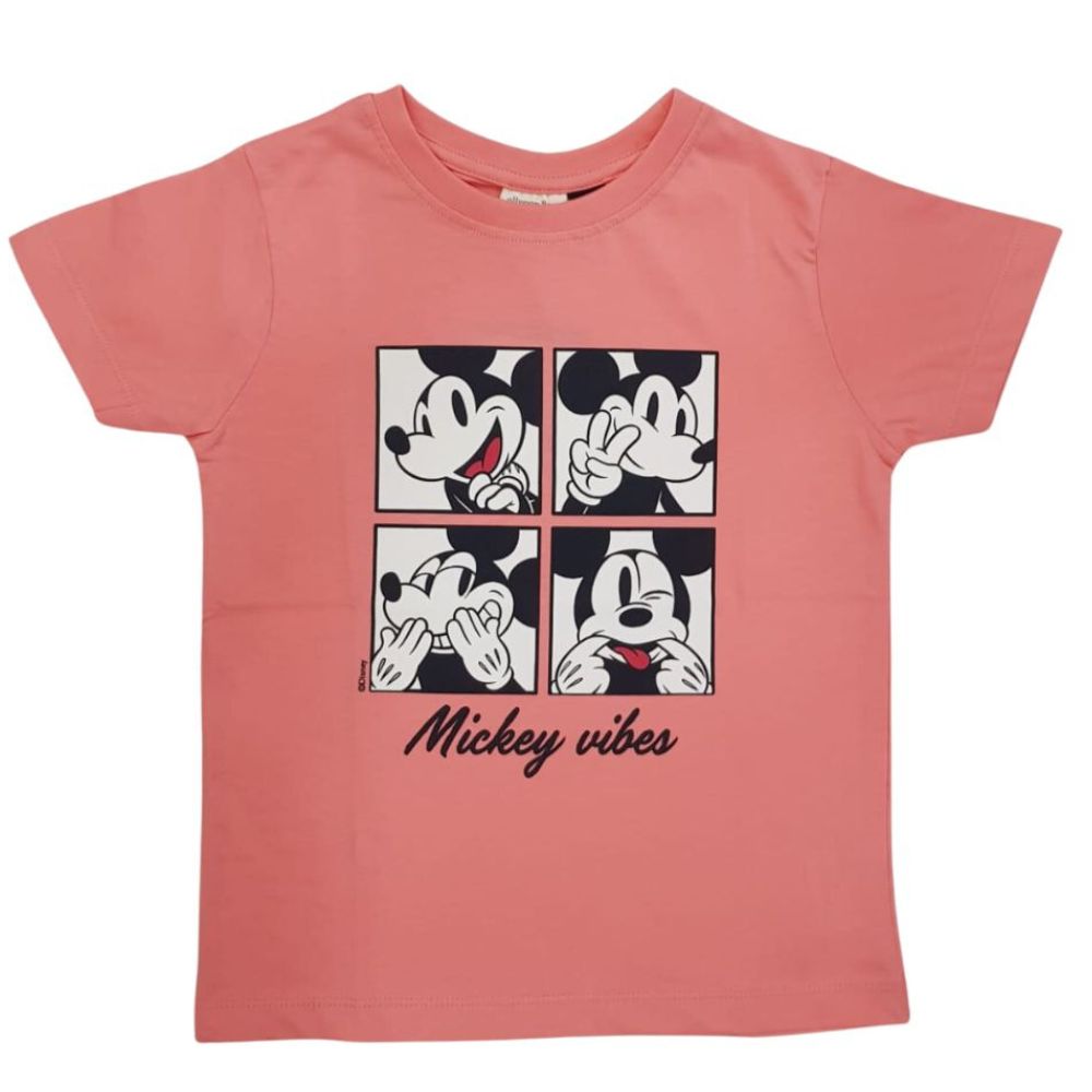 Disney Cotton Half Sleeves T Shirt With Disney Mickey Mouse Prints - Peach