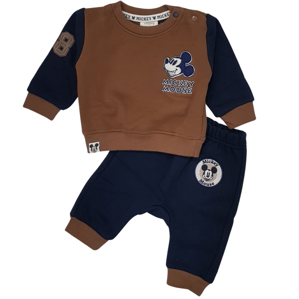 Ollypop Fleece Knit Full Sleeves Winter Wear T-Shirt & Joggers Set With Mickey Mouse Text Print - Brown
