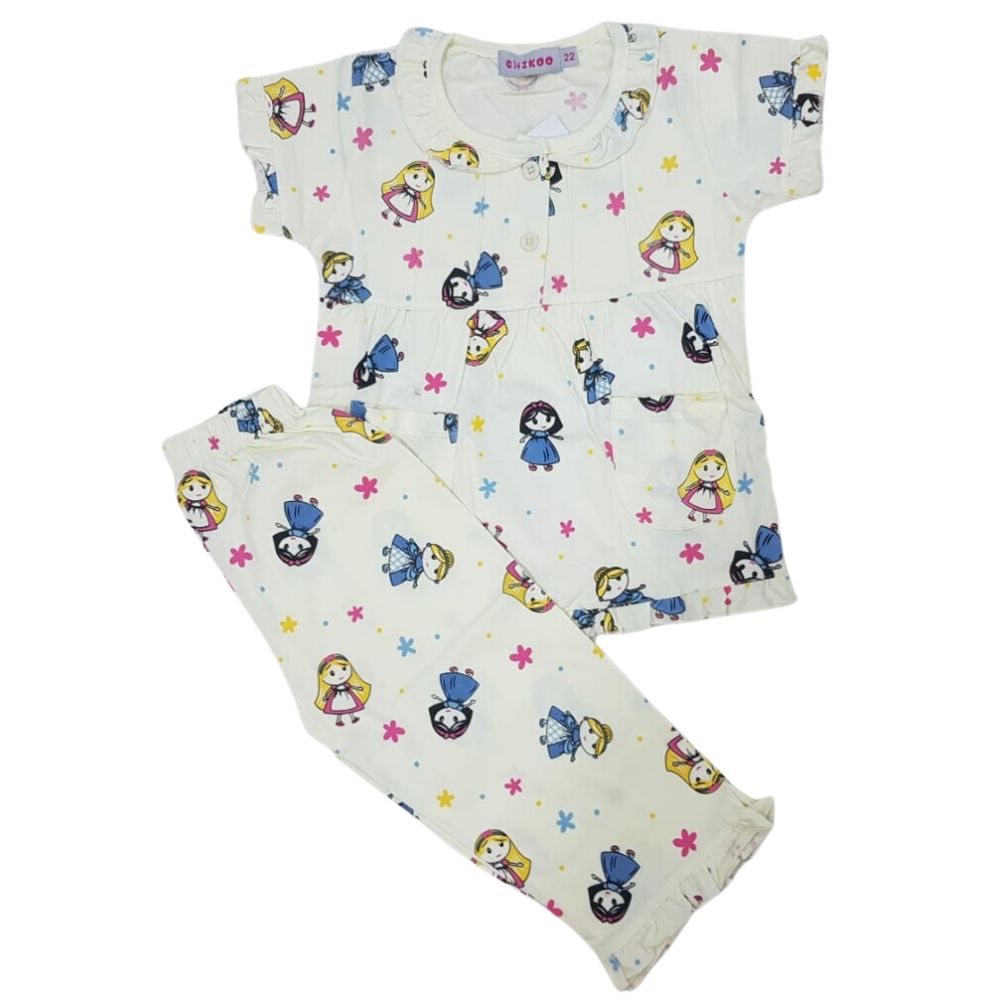 CHIKOO Baby Girls Pyjama Set With Dolls Prints -Light Yellow